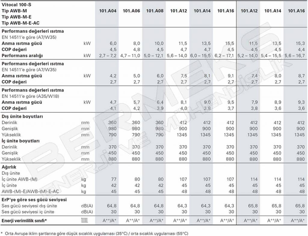 - EN 14511‘e göre (A7/W35) COP değeri: 4,5